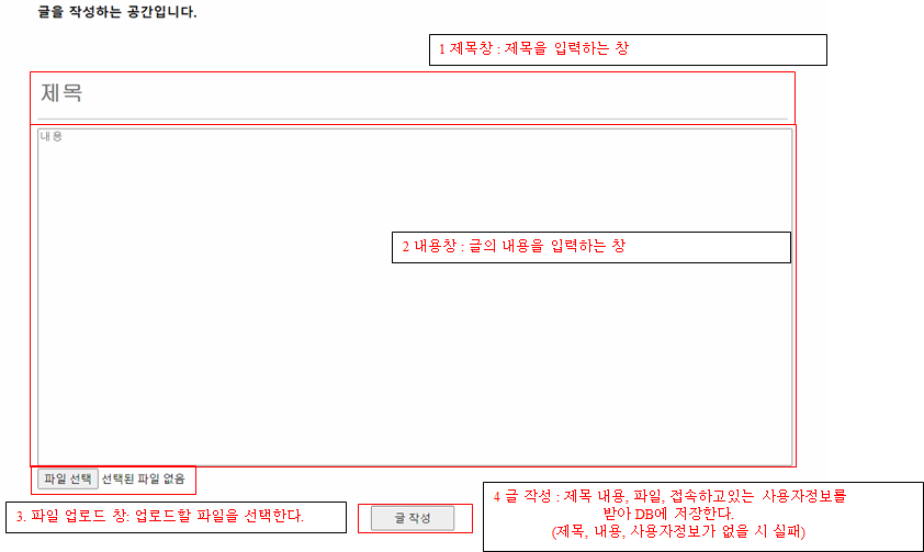 게시판 페이지에서 글쓰기 버튼을 누르면 글쓰기 페이지로 이동한다.