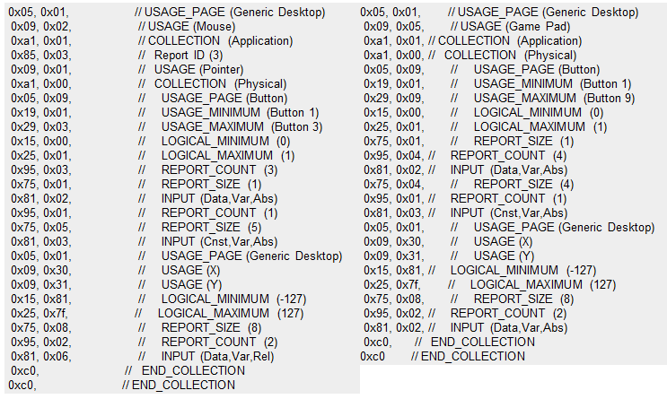 사용할 HID 기기의 descriptor를 설정 합니다.