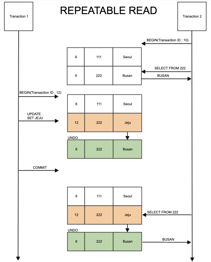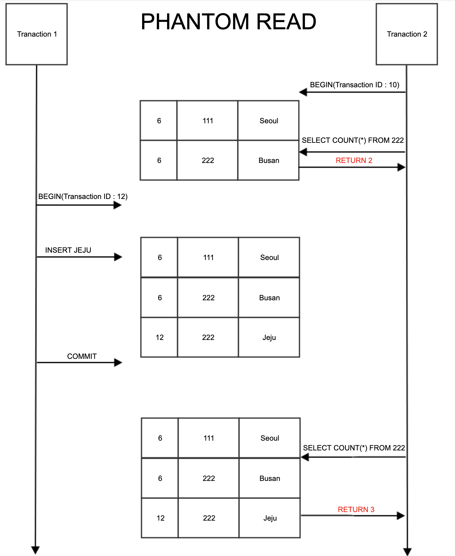 - 하나의 트랜잭션 안에서 SELECT를 수행 할 때마다 데이터가 동일하다는 보장을 해주지 않습니다.