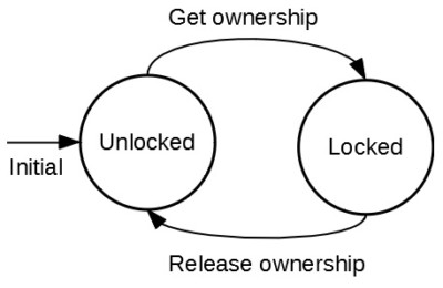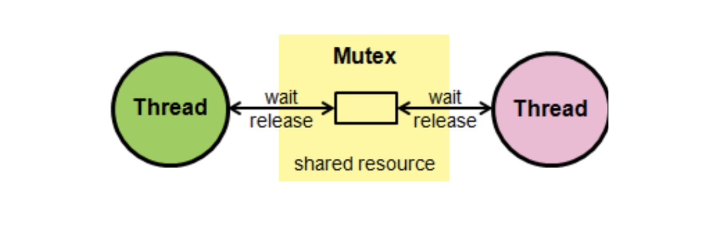 한 프로세스에 의해 소유될 수 있는 Key를 기반으로 한 상호배제 기법이고 Key에 해당하는 어떤 객체(Object)가 있으며, 이 객체를 소유한 스레드/프로세스만이 공유자원에 접근할 수 있습니다. Locking 메커니즘으로 오직 하나의 쓰레드만이 동일한 시점에 뮤텍스를 얻어 임계 영역(Critical Section)에 들어올 수 있다. 그리고 오직 이 쓰레드만이 임계 영역에서 나갈 때 뮤텍스를 해제할 수 있습니다.