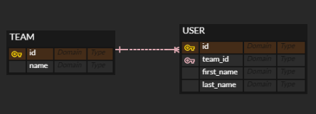 DB 구조는 유저(USER)는 한개의 팀(TEAM)에만 속할 수 있고 팀(TEAM) 하나는 여러 명의 유저(USER)가 가입 할 수 있습니다.